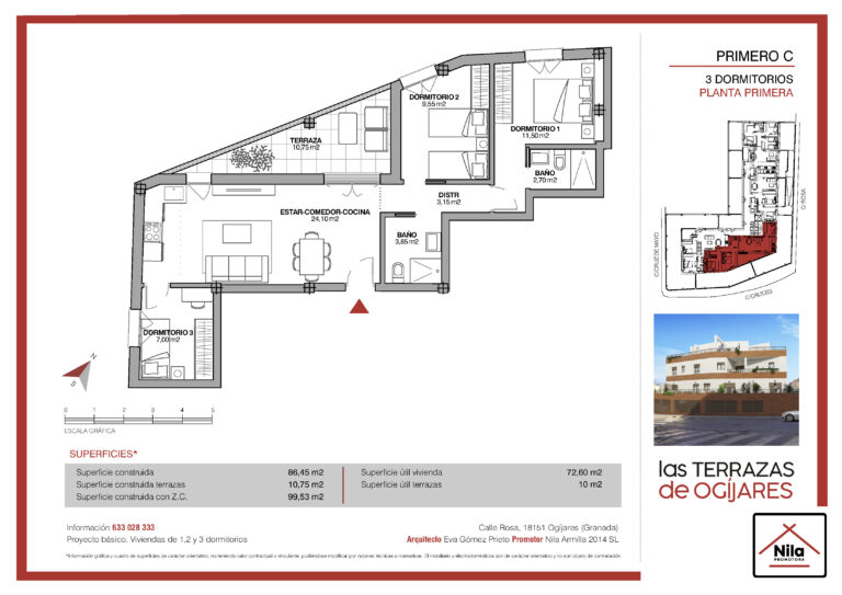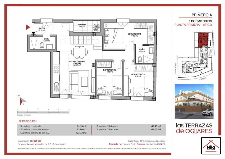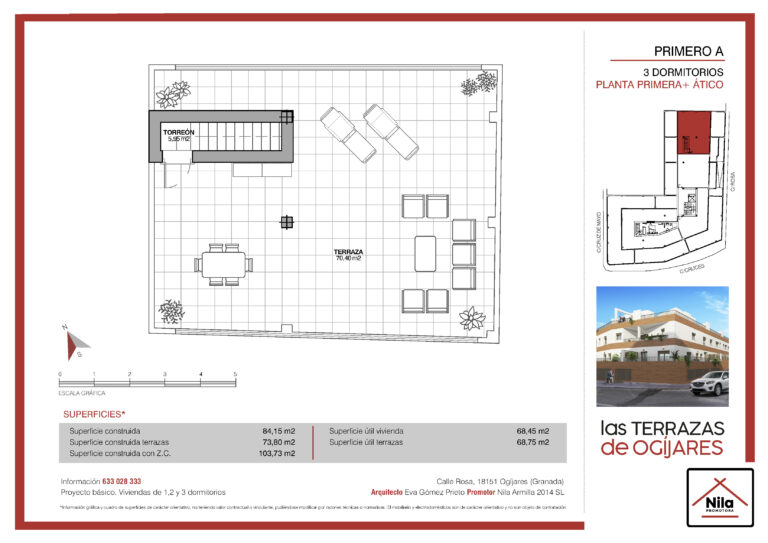Nuestra promoción en Ogíjares avanza según lo previsto y ya se encuentra en plena fase de construcción. Ubicada en un enclave tranquilo y bien comunicado, en la intersección de C/ Rosa con C/ Cruces, este proyecto ofrece viviendas de calidad diseñadas con mimo y especial atención a los detalles.